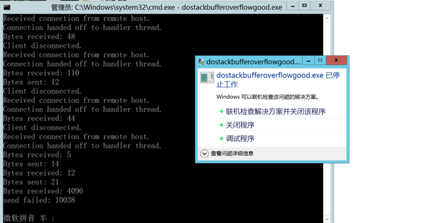 OK,我们生成的20000个字符已经发送完毕,程序也已经抛出异常,然后我们开始计算偏移量