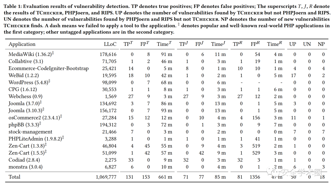 作者实现了TChecker的原型,并检测出了18个未被发现的PHP程序漏洞。与其他静态分析工具相比,TChecker在漏洞检测上有更好的精确度。
