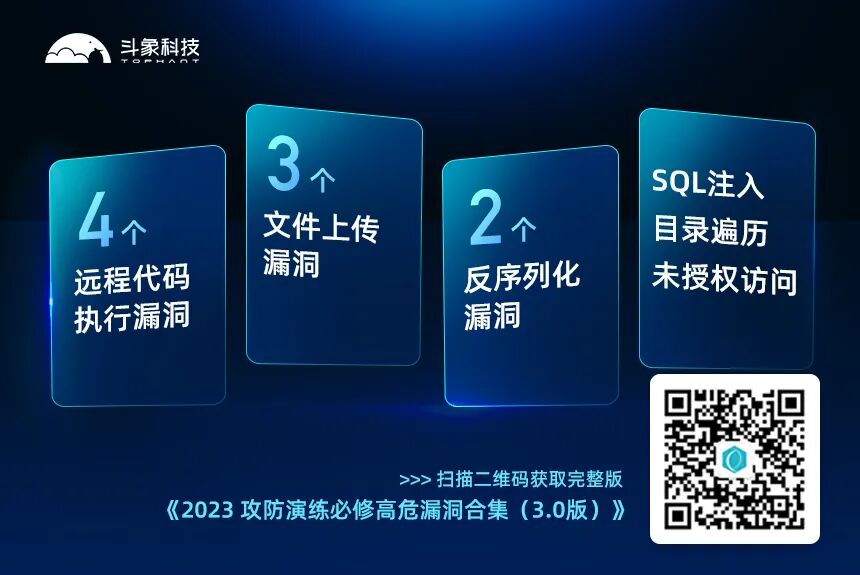 今天,2023年攻防演练正式开启!斗象科技针对之前发布的《2023HW必修高危漏洞集合(1.0)》