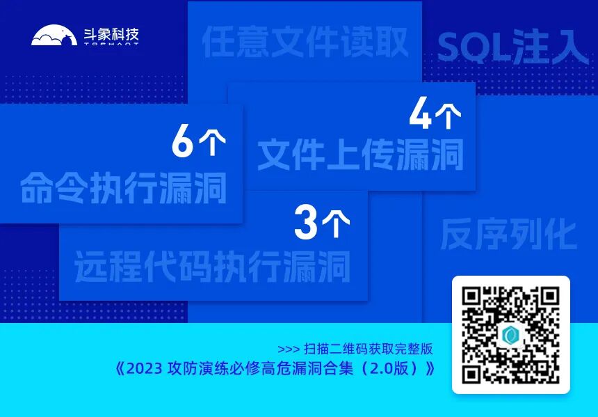 ”公众号,后台回复“2023攻防演练必修高危漏洞集合(2.0版)”