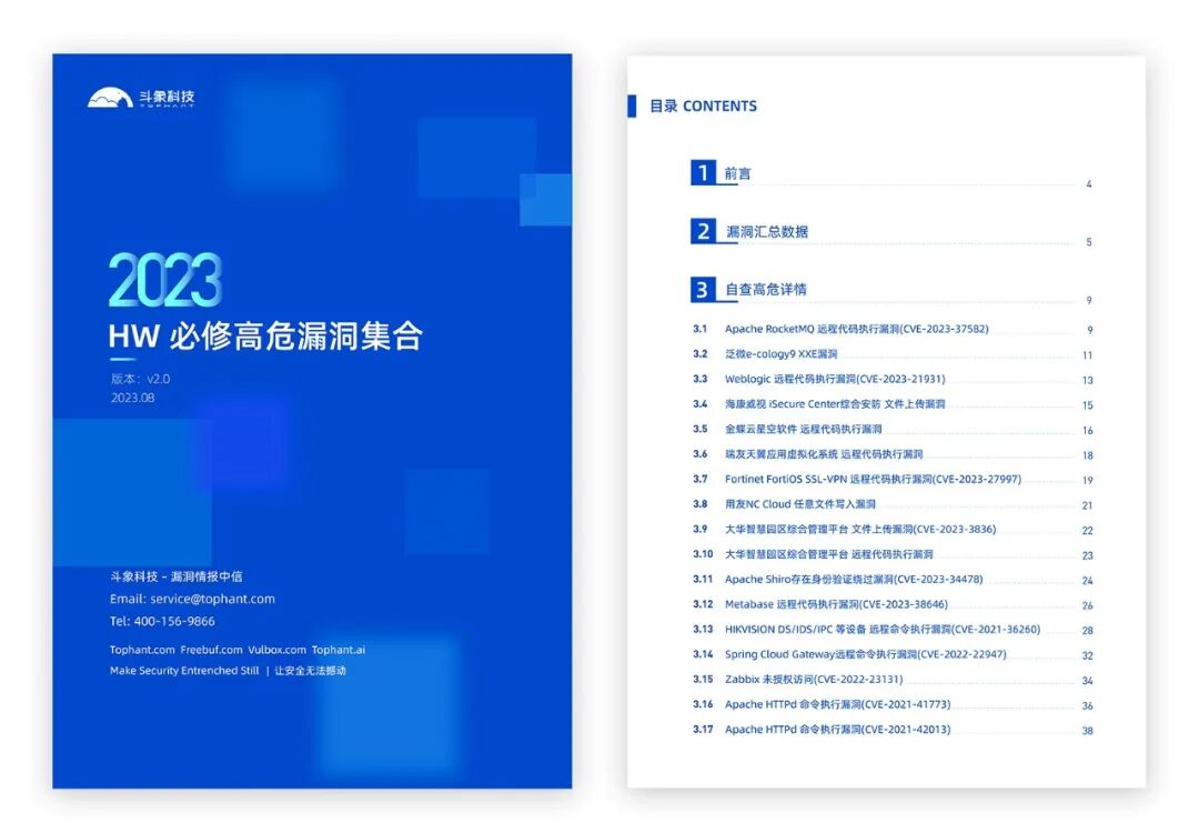 《2023攻防演练必修高危漏洞集合(2.0版)》