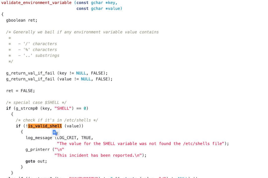 当程序中shell的环境变量为无效shell时就会触发g_printerr的报错: