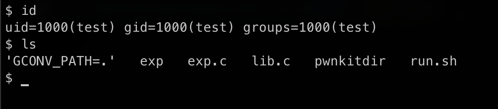 所以要用到环境变量GCONV_PATH,该环境变量能够使glibc使用用户自定义的gconv-modules文件,而gconv-modules可以指定带有函数gconv()和gonv_init()的libc文件。在polkit源码中,多次使用了g_printerr函数进行报错,如果环境变量CHARSET不是UTF-8,g_printerr()将会调用函数iconv_open()来转换编码,此时iconv_open就会去根据环境变量GCONV_PATH寻找gconv-modules,并找到gconv-modules指定的libc文件,调用其中的gconv()与gonv_init()。