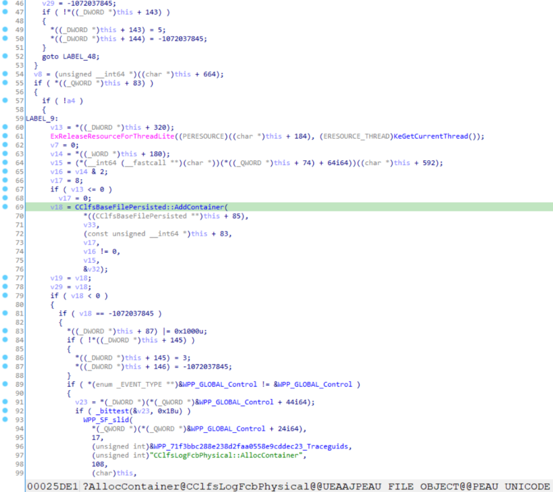 AllocContainer函数的69行调用了CClfsBaseFilePersisted::AddContainer函数。