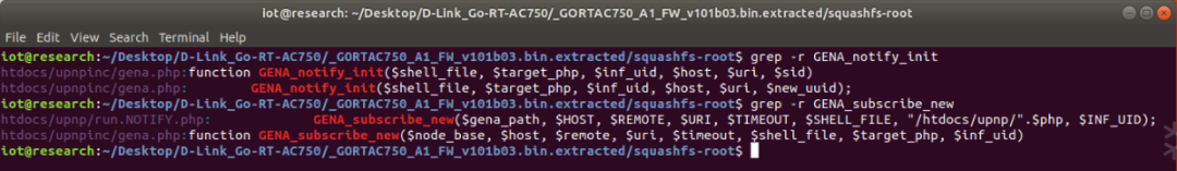 D-Link Go-RT-AC750相关的命令注入漏洞复现就告一段落了,起初看到一个设备有这么多命令注入漏洞,就很好奇会不会是同一个原因造成的,经过逐一复现后发现也能算是同一个原因,使用UPnP服务不检测输入的原因。这个固件把UPnP的GENA、SOAP、SSDP等位置的漏洞都触发了一遍,是一个很好的学习UPnP漏洞的样本。