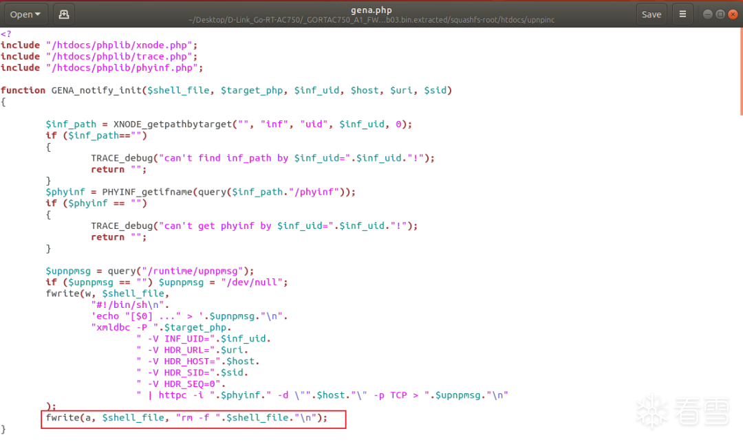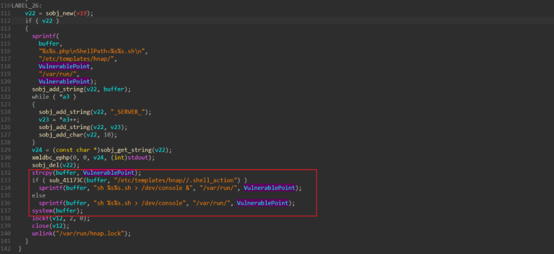 代码中的目的是为了执行rm -f shell_file命令删除shell_file文件,但shell_file可通过SUBSCRIBE传入的服务参数进行控制并且全程没有任何对服务参数的检查,从而可实现命令注入。