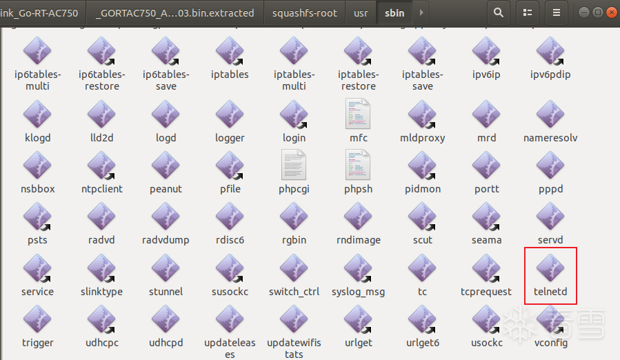 解包成功,浏览完文件系统中文件发现有telnetd,可用于漏洞验证: