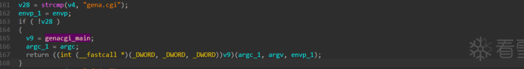 将htdocs/cgibin拿到IDA中分析,并直接定位到函数genacgi_main,调用该函数的代码为: