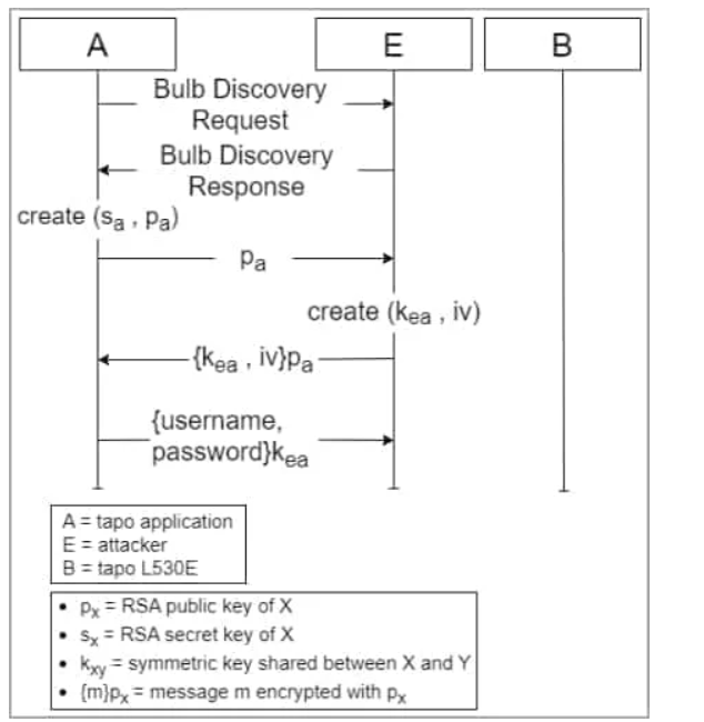 第一个漏洞是Tapo L503E智能灯泡中的认证不当引发的,攻击者可以在密钥交换过程中假冒设备,漏洞CVSS评分8.8分。攻击者利用该漏洞可以提取Tapo用户密码并操纵Tapo设备。