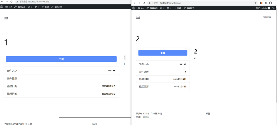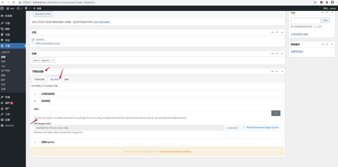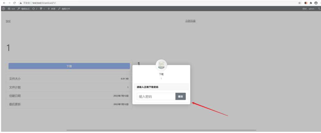登录后台后,上传并加载启用插件,我们添加两个不同的文件,并设置不同的密码