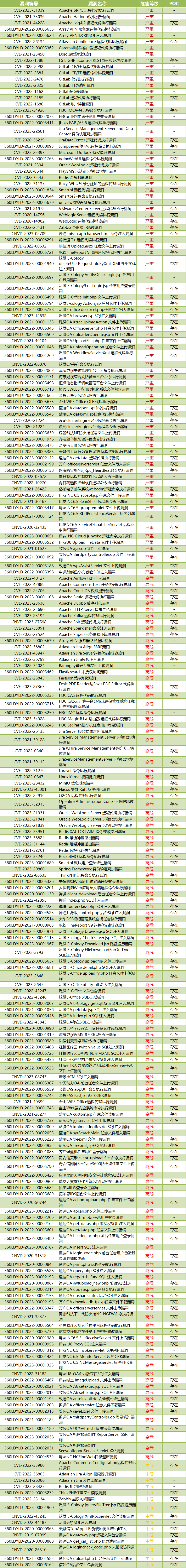 以下内容为2023攻防演练必修关键漏洞部分内容,漏洞云情报订阅用户可登录漏洞云情报平台,获取更多漏洞检测和修复方案。