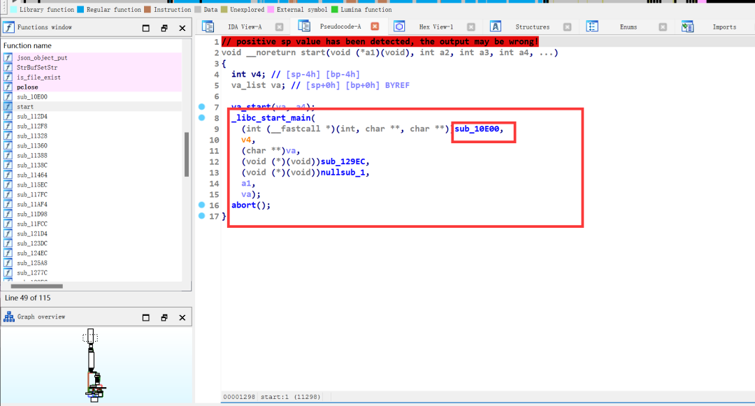 接下来从最终的利用点进行倒着分析,这个sub_115EC函数被调用于main函数。