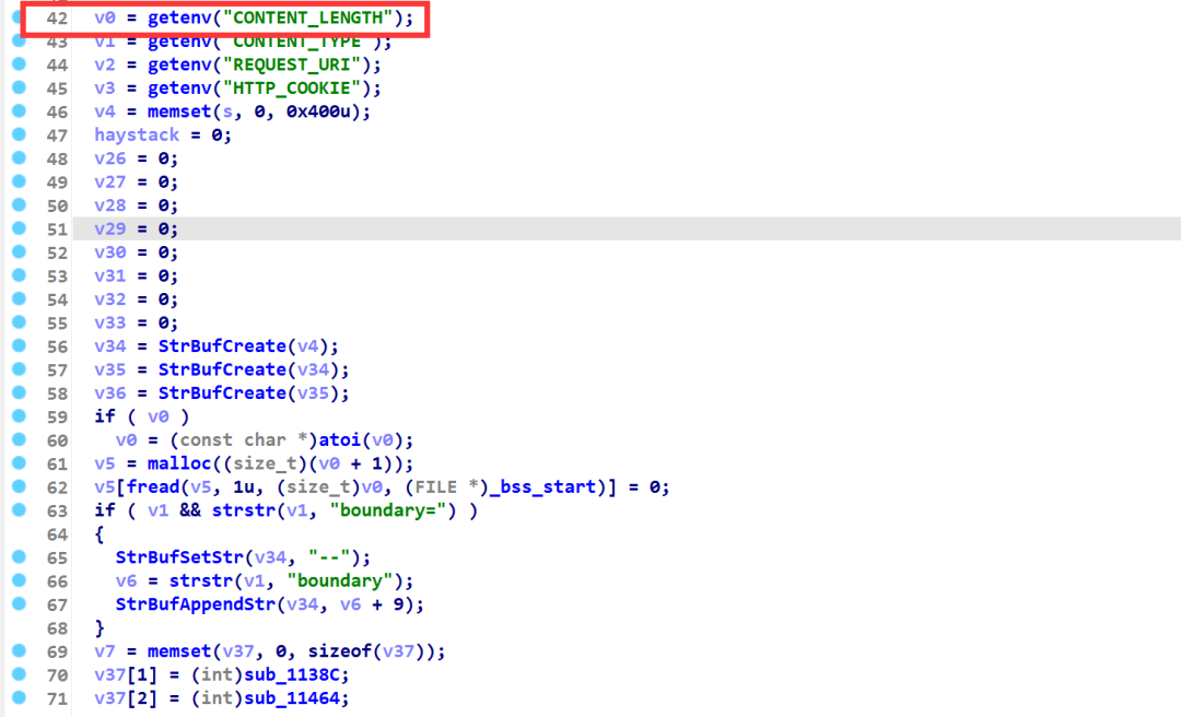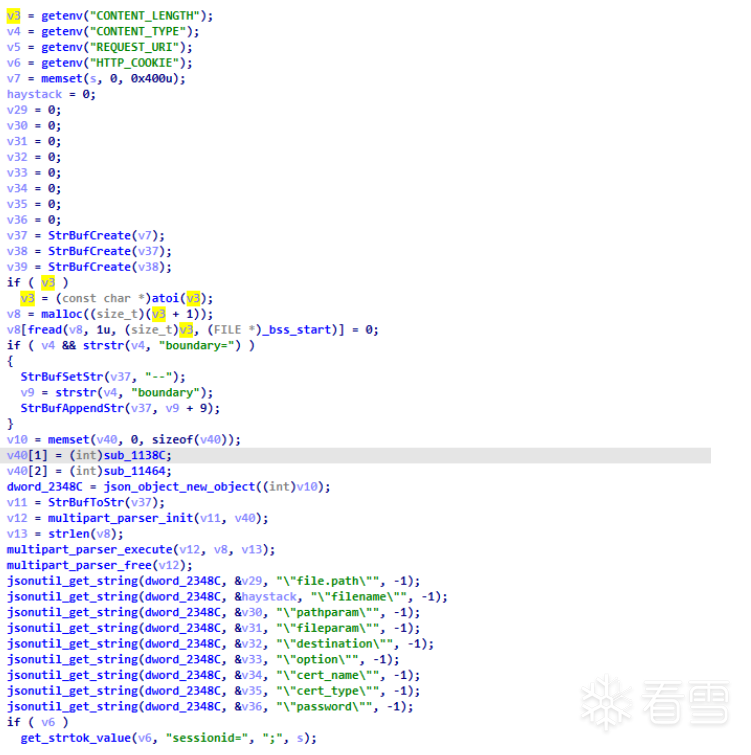 这需要分析下面的代码(此处的分析需要配合动态调试,关于如何动态调试这种cgi程序,请看“调试方法”一节)。