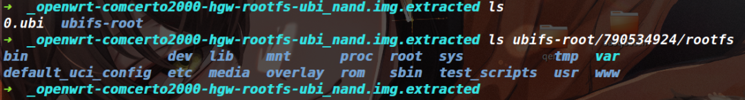 对于解压ubi格式的文件系统补充两个方法,因为我们只是要文件系统,所以binwalk解压出来0.ubi文件后(用其他解压软件也能解出来0.ubi,比如7zip),可以直接用ubireader_extract_files 0.ubi命令来解压0.ubi,这样不会出现那个软链接的问题,但得安装ubi_reader。还可以使用ubidump(https://github.com/nlitsme/ubidump/blob/master/ubidump.py)对ubi文件系统进行提取,直接复制源码,然后执行python3 ubidump.py -s . 0.ubi进行提取,这两种方法都不会破坏其中的软链接。