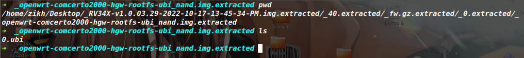 这是因为这里的文件系统是ubi格式的,我的binwalk当初是用apt install binwalk安装的,就导致少装一些东西(尽量通过源码安装binwalk),最终就没提取出来这个ubi格式的文件系统。可以看到下面这个路径的位置只有一个0.ubi的文件,确实是没提取出来文件系统的。