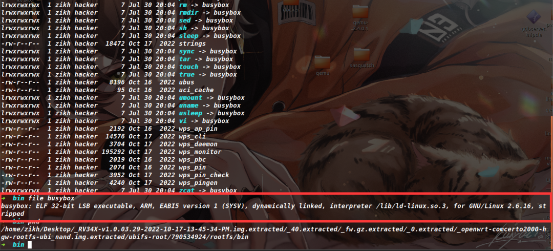 首先用file命令查看一下busybox的文件信息(如下),这里是ARM架构 小端序,因此我们要下载对应的内核映像还有磁盘映像等文件。