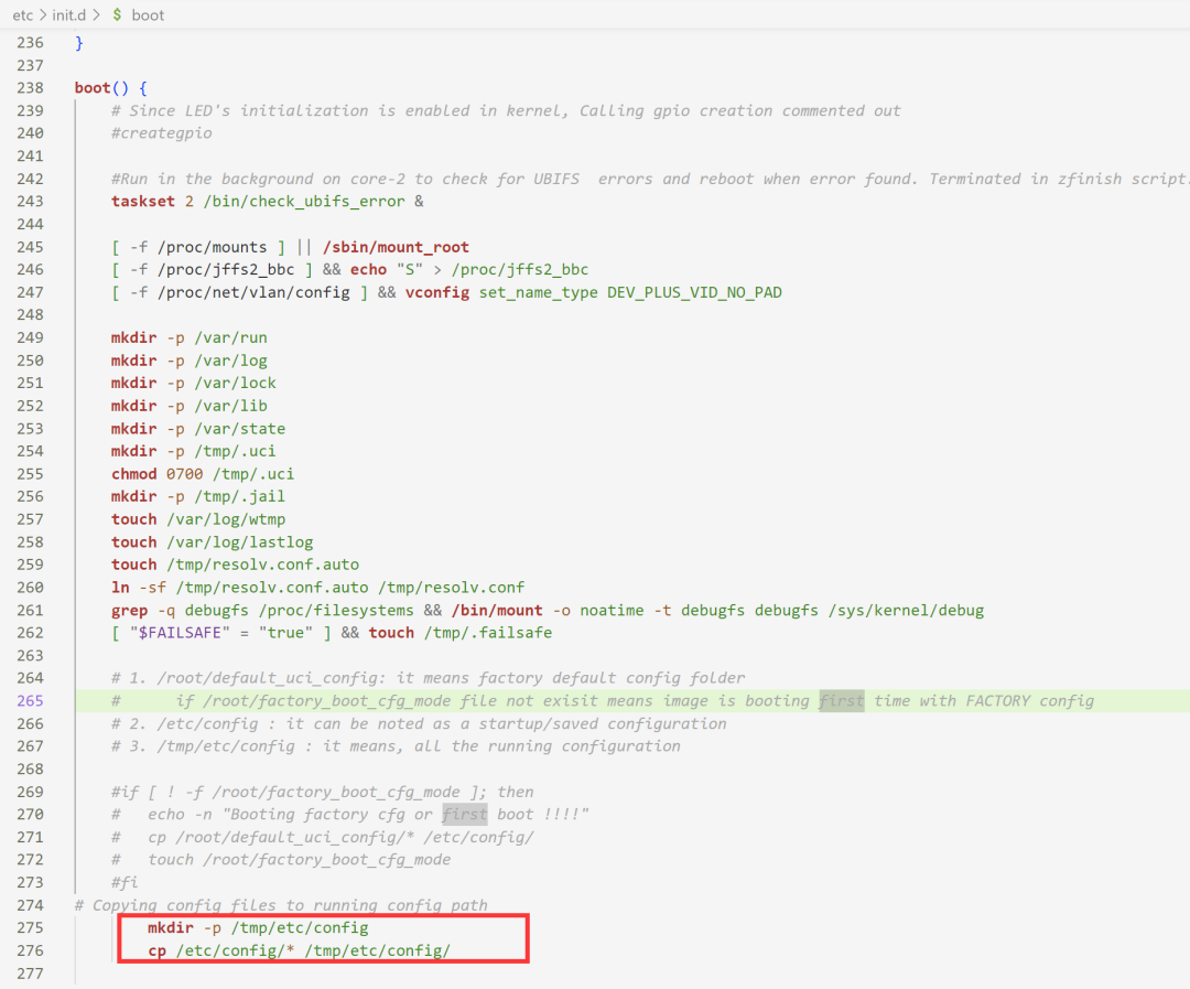 意思是uci读取的这个配置路径不存在(我是这里理解的),然后在/etc/init.d/boot文件中有两行代码,就是来创建的路径。