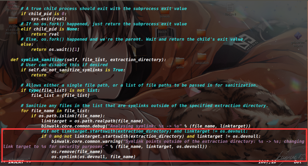 然后回到binwalk主目录执行sudo python3 setup.py install重新安装一下,如此就不会再执行将软链接置成/dev/null的操作了。