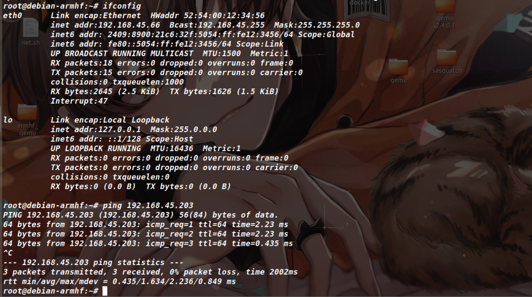 1.关掉qemu,重新进入,依次执行上面的四个命令,并确保命令是执行成功了(因为是仿真,虽然还有很多报错,但只要能启动需要的服务就是好仿真)。