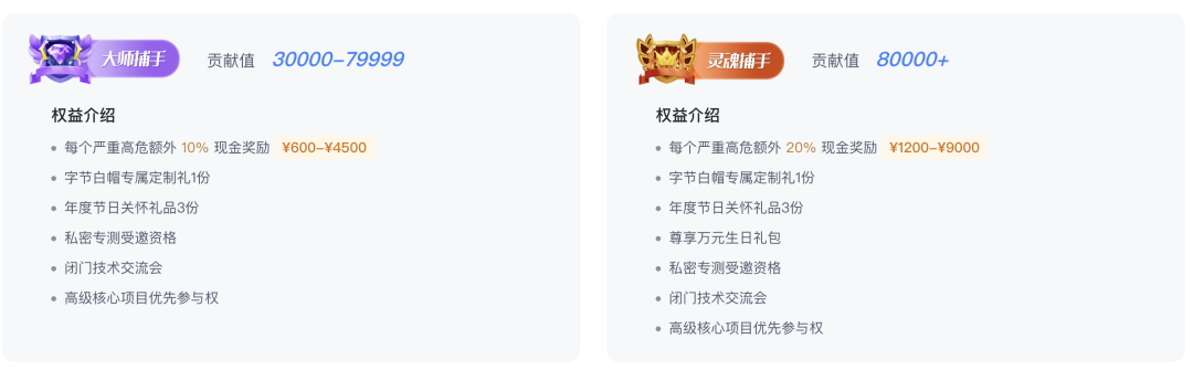 *- 老用户邀请新用户*提交有效高危/严重漏洞,每推荐1人奖励伯乐800元;受邀人同享 800 元
