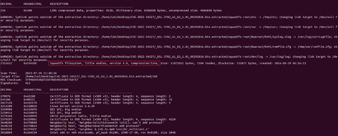 使用binwalk对固件解包,获取文件系统。