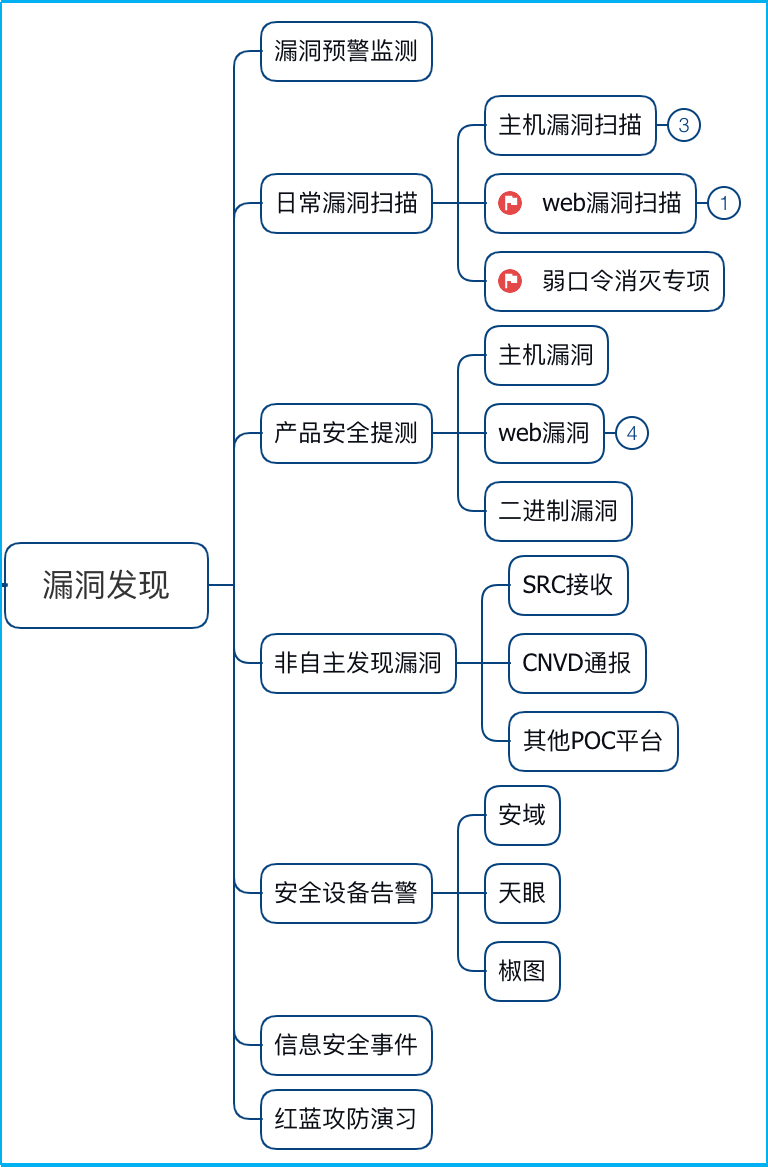· 在安全防护团队中,设置专岗人员进行资产信息收集与识别、最新漏洞跟进分析、编写POC、执行漏洞扫描等工作;