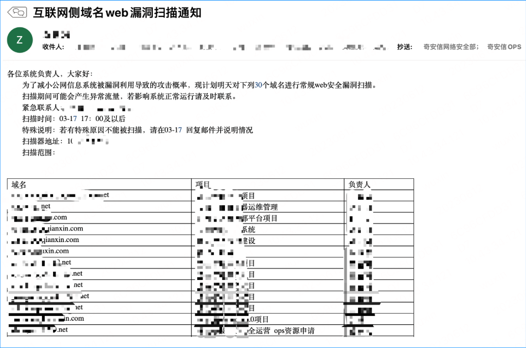 至少保证在进行漏洞扫描的前一天,对资产owner进行邮件通知,并标明扫描资产和联系方式。