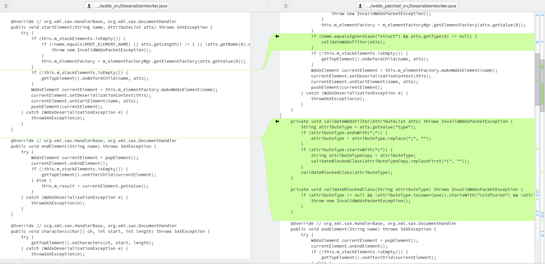 7 月 12 日,Adobe 发布了 ColdFusion (2023 release) Update 1 更新。将 patch 包反编译后的代码与更新前的代码进行比对,可以发现