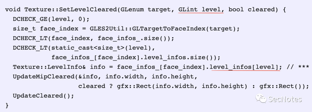 这个漏洞的成因是out-of-bound access。正常情况下,level_infos会被设置成MaxLevelsForTarget(target)