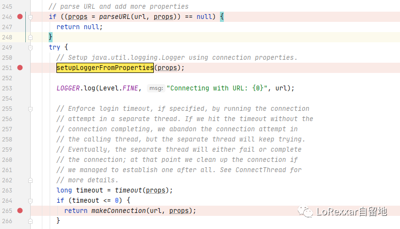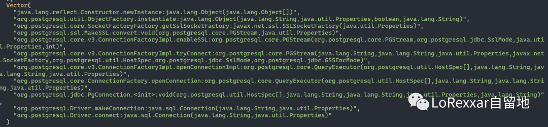 从connect方法一路跟进org.postgresql的代码当中,链接之后的参数会被拆解为字典然后分别进入不同的配置中,也就是说等于到url这里我们就是可控的,也就是作为source,进到包里的这个入口是connect方法