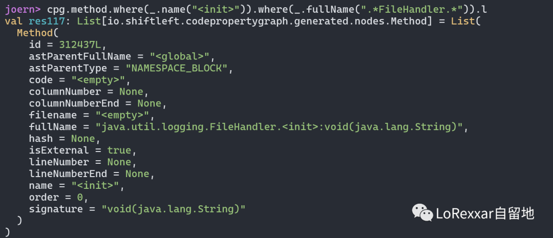 cpg.method.where(_.name("<init>")).where(_.fullName(".*FileHandler.*"))