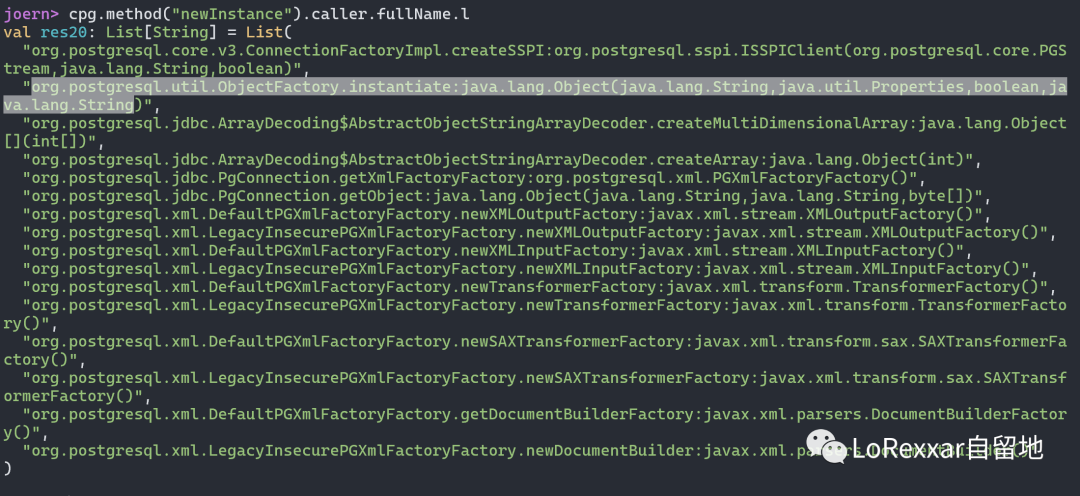 在Joern中可以通过寻找构造函数的关键字,再限制方法的返回类型来寻找这样的类.