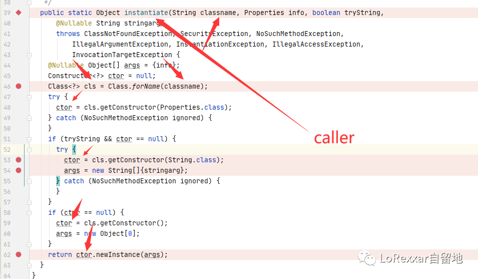 所以我们假定调用方法newInstance是sink点可以用caller获取调用该方法的地方,也是可以读到我们目标类方法的。