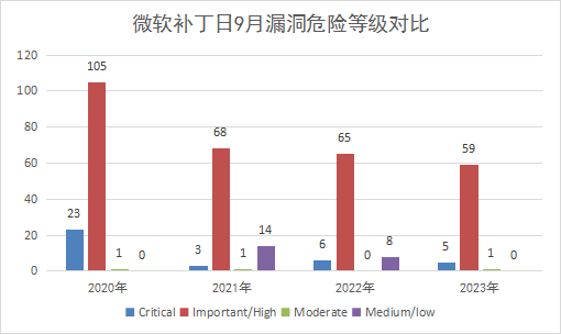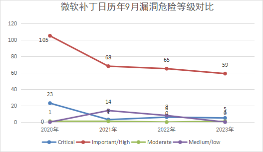 2020-2023年,9月份的漏洞危险等级趋势和数量如下图: