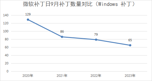 图 2 微软近年9月Windows补丁漏洞数量对比