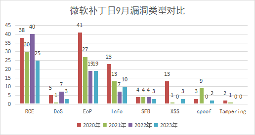 2020-2023年,9月份的漏洞各个类型数量对比如下图:
