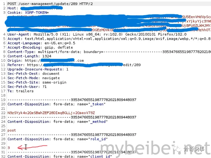 首先发现只有管理员可以更改用户角色和其它配置文件详细信息。当去辑受邀用户个人资料选项时,发现该请求数据包很有趣,POST请求像下面这样: