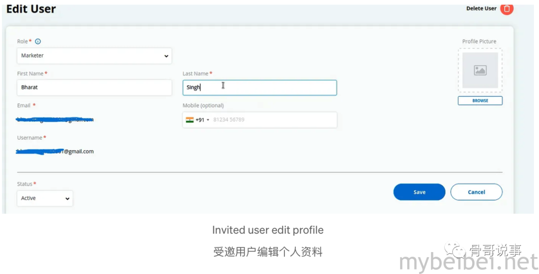 该应用程序有不同用户角色的邀请功能,如管理员、营销人员、营销主管等等……