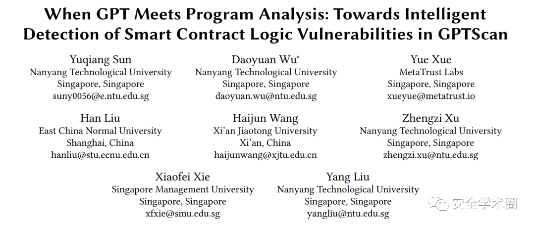 南洋理工大学 | 当GPT遇到程序分析:在GPTScan中实现智能合约逻辑漏洞检测