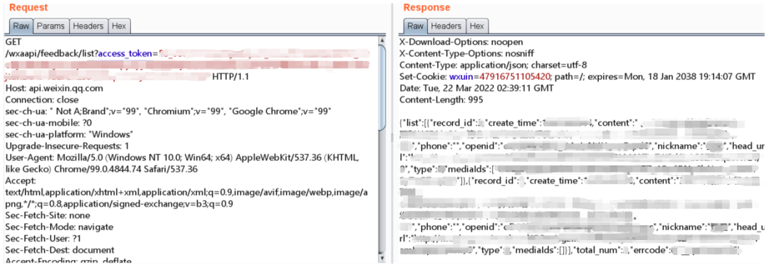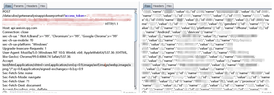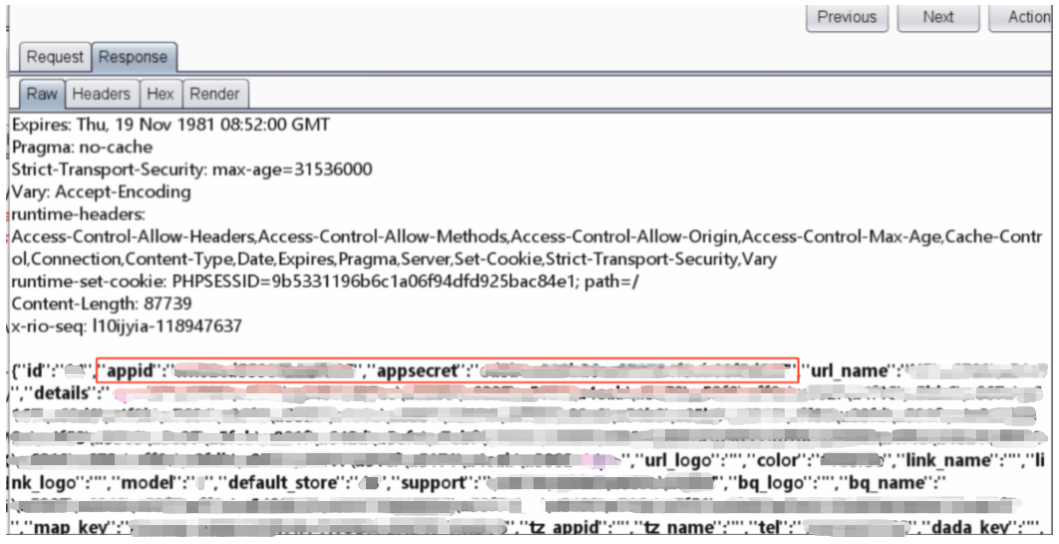 通过以下展示我们可以明晰该小程序敏感数据外泄的原因,测试者先对小程序网络请求进行抓包,发现请求响应中包含了appid和AppSecret敏感信息:
