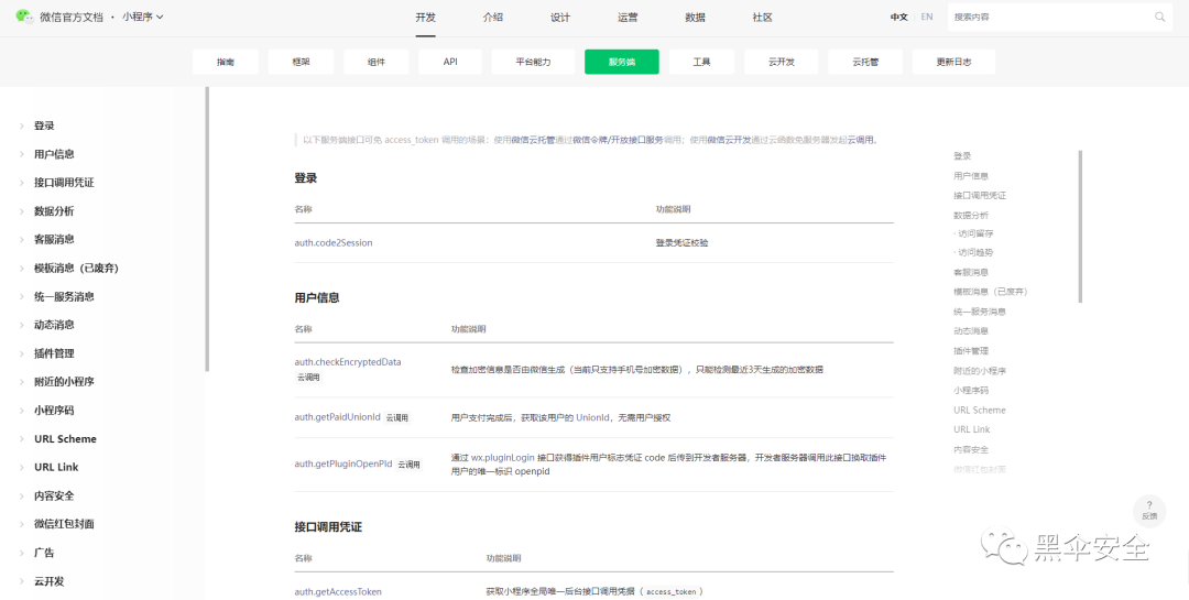 最后可以实现使用access_token调用该小程序所有后台接口的目的,后台服务端接口