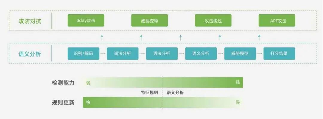 全悉(T-ANSWER)的无规则智能威胁识别引擎,按照攻击类型从语法进行分类,从语义上真正理解当前payload是否为攻击,对攻击者使用的变种攻击、混淆攻击、0day攻击具有实际的检测效果,能够天然检测超过50%的0day攻击。