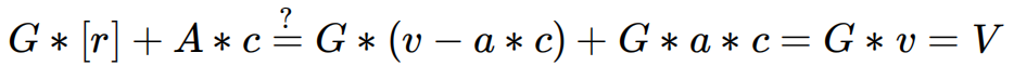 如果 check 为 true,那么就能证明 Alice 知道 a ,原理如下: