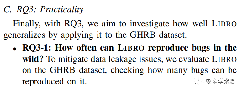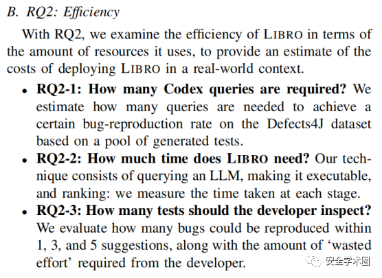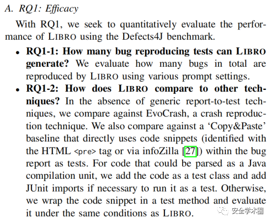 本文的评估数据集为Defect4J 2.0。作者设计了3个RQ以验证LIBRO的效果,效率和实用性,如下(PS:这个格式值得借鉴):