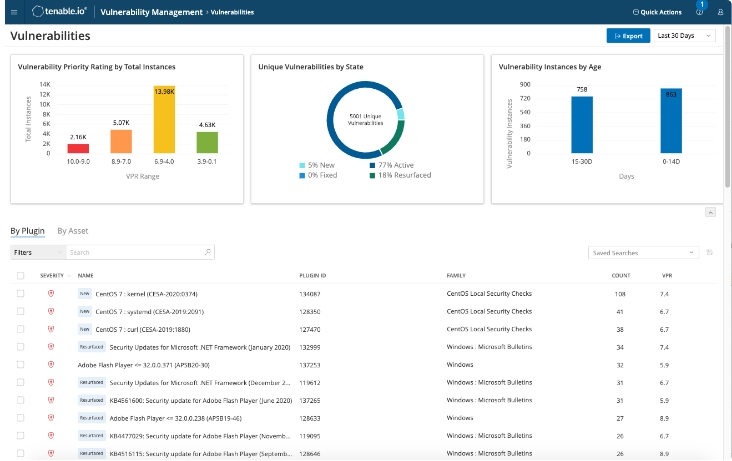 Tenable是一款基于云的漏洞管理工具,强调基于风险来检测和管理网络、网站和应用程序上的漏洞。它可以提供实时漏洞洞察能力,利用威胁情报根据严重程度和潜在影响对漏洞进行分类和优先级确定。