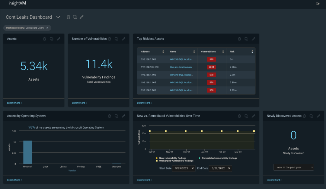 Rapid7 InsightVM是一款基于云的现代化漏洞管理工具,旨在提供扫描、监控、报告和修补服务,与各种端点安全工具集成,以满足中小企业的需求。该平台强调风险优先级确定,可以外包的托管服务方式提供给中小型企业组织使用。