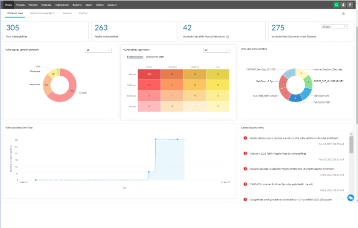 ManageEngine Vulnerability Manager Plus是一款本地化部署的漏洞管理和合规解决方案,提供了广泛的威胁可见性、漏洞检测修补以及针对系统配置的CIS基准检查功能。