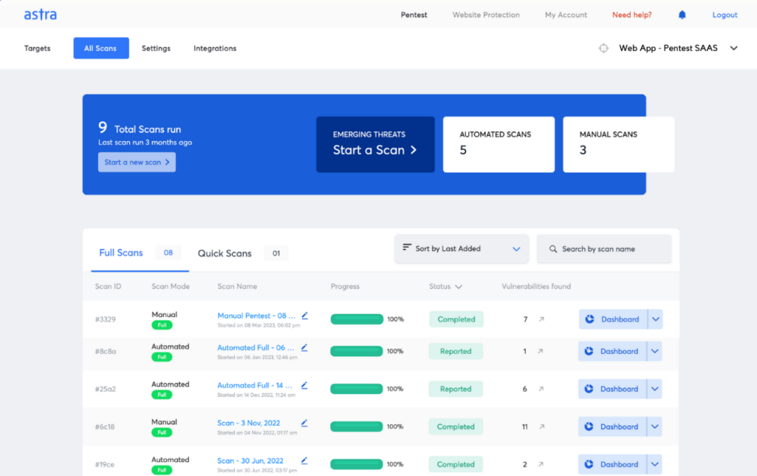 Astra Pentest是一款结合自动扫描与手动渗透测试的漏洞管理工具,可以为各类企业组织提供潜在安全威胁识别和防御服务。