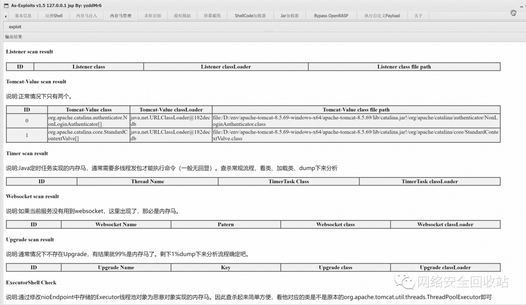 增加Listener、Tomcat-Value、Timer、Websocket 、Upgrade 、ExecutorShell内存马的查杀检测