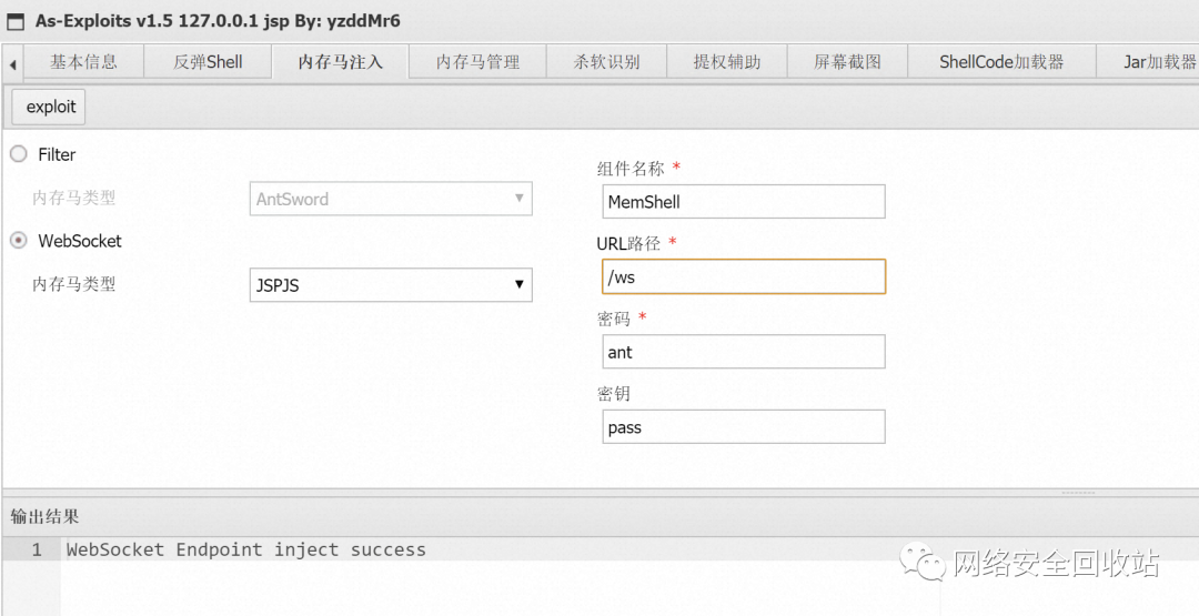 新增4中WebSocket类型内存马:CmdWs,CmdBase64Ws,JSPJSWs,JSPJSBase64Ws